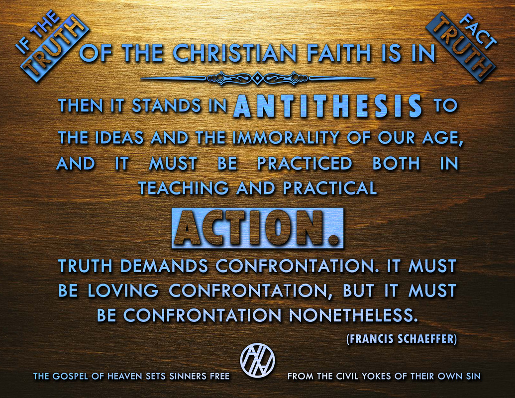 That necessarily includes recognizing that only the truth claims found in the Bible are consistent and ultimate. Not just with itself in a logical framework to understand various physical sciences, from cosmology, to archeology, to molecular biology, to history, but also to understand political science and why men go under the civil authority of ruling men, how to get them out again, and just what makes mankind special enough to be eligible for that kind of redemption.