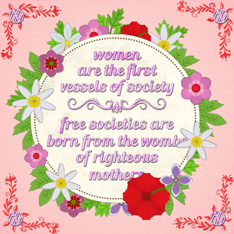 However, despite these misconceptions about anarchist philosophy, one thing should be made distinctly clear: Women are the first vessels of society. Society is born out of a womb of a woman, and without women, there is no society. It has no life. In an anarchist society, a free society, a righteous woman’s sacred job rests upon the weightier matters of society, like health, education, and welfare.