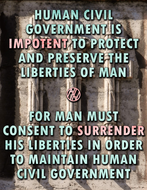 So, why does Man discard his real rights to land, property, and power of choice? Why does he invest the beneficial interest of those things to human civil government? He does this in fear and faithlessness to God. He does this in covetousness for his neighbor’s goods. He does this in the sloth of failing to increase his equity and provide for his own.