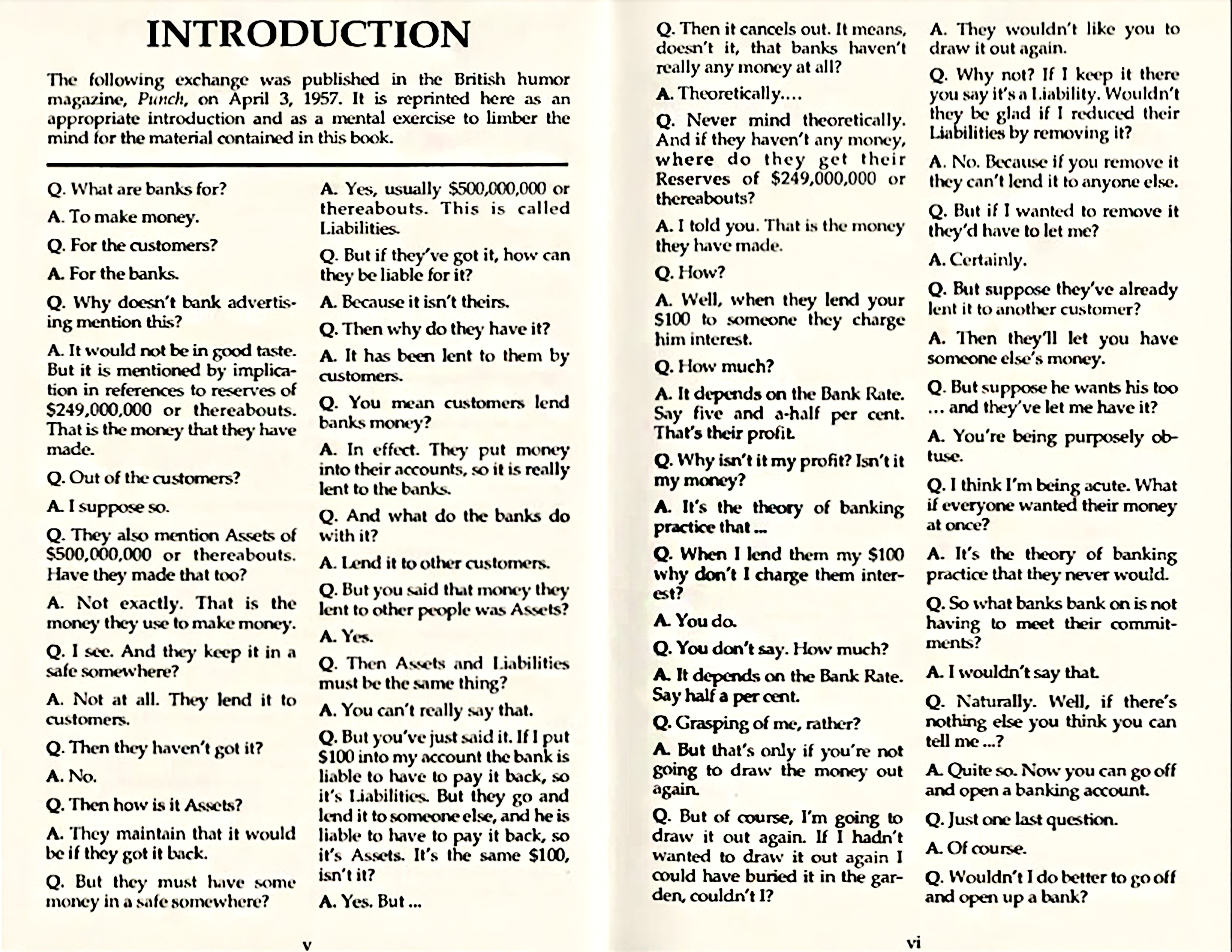 “If all the bank loans were paid, no one could have a bank deposit, and there would not be a dollar of coin or currency in circulation. This is a staggering thought. We are completely dependent on the commercial banks. Someone has to borrow every dollar we have in circulation, cash, or credit. If the banks create ample synthetic money we are prosperous; if not, we starve. We are absolutely without a permanent money system. When one gets a complete grasp of the picture, the tragic absurdity of our hopeless situation is almost incredible—but there it is.” (Robert Hemphill. Credit Manager, Federal Reserve Bank of Atlanta)