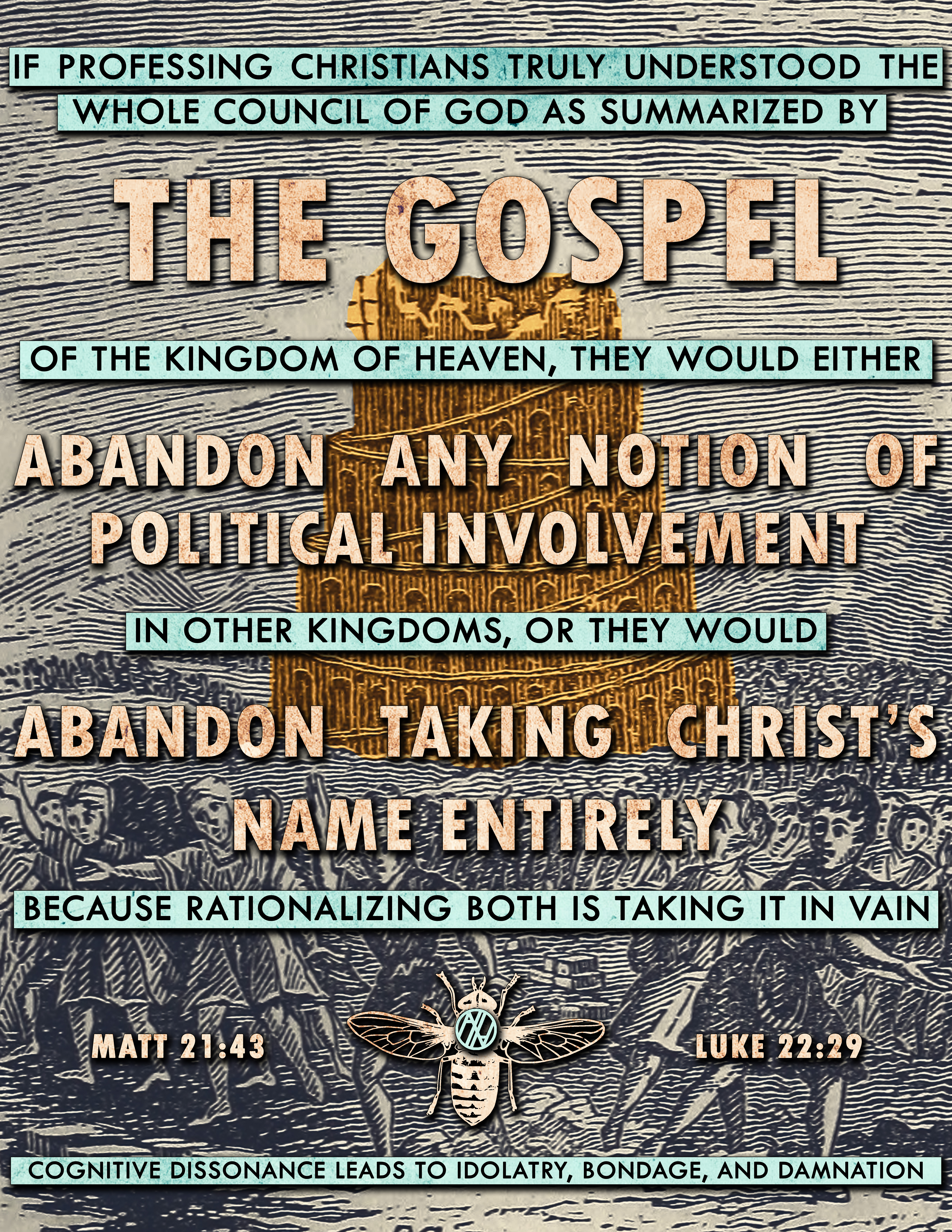 So can an American, a member, a citizen, a national, of a state, nation, country, a organized jural society, with its own constitutions, and laws also be a Christian, a member, citizen, of the Christian nation, Church, government of one King, one Jesus, the anointed King of the Kingdom of God, aka, the Kingdom of Heaven? Of course not. One must “die” to their old master and be “born again” and “baptized” into a new “body politic”, a new “nation”, “state”, “country”, “government”, “society”, “community” under a new “sovereign” and agree to receive, preserve and propagate the laws of the new “sovereign” they are now faithfully worshiping and giving their allegiance to as their new lord, master, God, mighty one of authority. In the legal speak of the civil world of men, it’s called “expatriating and naturalization”, aka, “dying, being born again and baptized”.