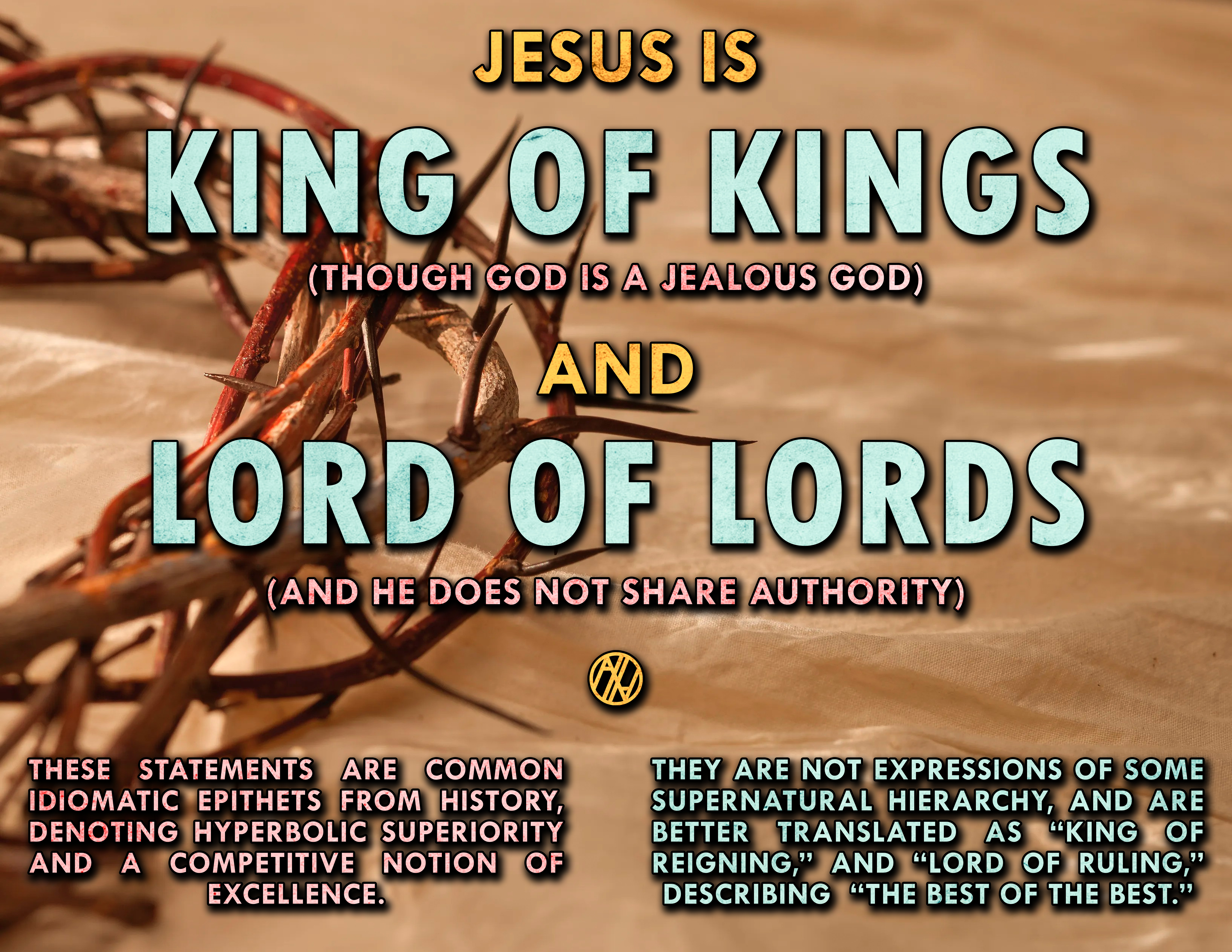 To get to the point, the phrases “King of kings” and “Lord of lords” are an oversimplification of the literal translation, even though the idiom is a common one in Scripture and the rest of history. The confusion is, as usual, with the Statists who are generally unfamiliar with the concepts of idioms, but, nevertheless, this article is here to educate them.
