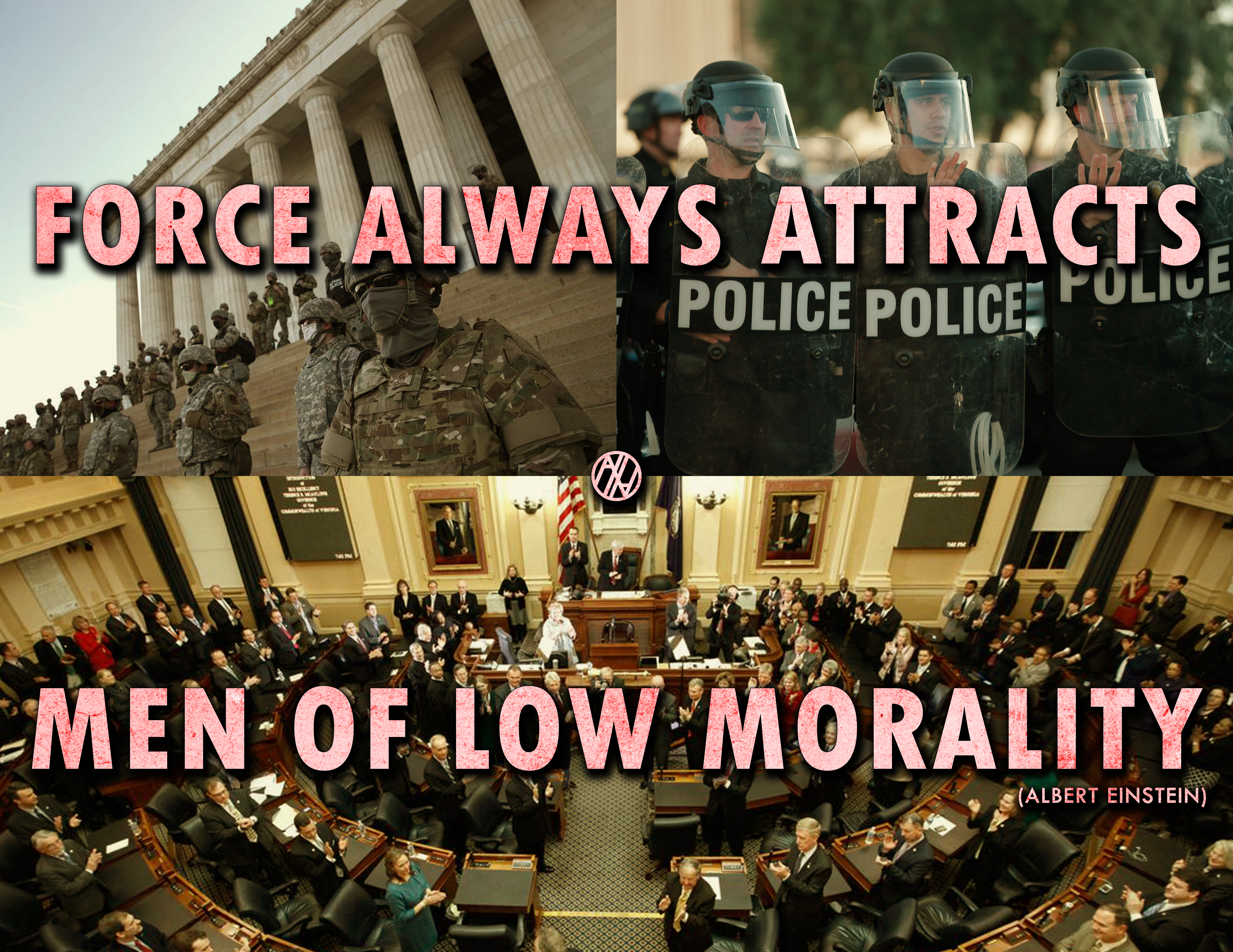 Attempting to start with “a little institutionalism” sows the seed that produces a wicked tree of outright oppression and tyranny. The tree cannot bear any other kind of fruit. Its nature cannot be changed. The only favorable possibility is to let it whither and die and prevent yourself from planting the seed to begin with. Even if you plant it in “self-defense,” the blows with which you defend yourself are never concentrated onto those who have offended you, rather they make collateral damage out of every single person who pays taxes to fund your “self-defense.”