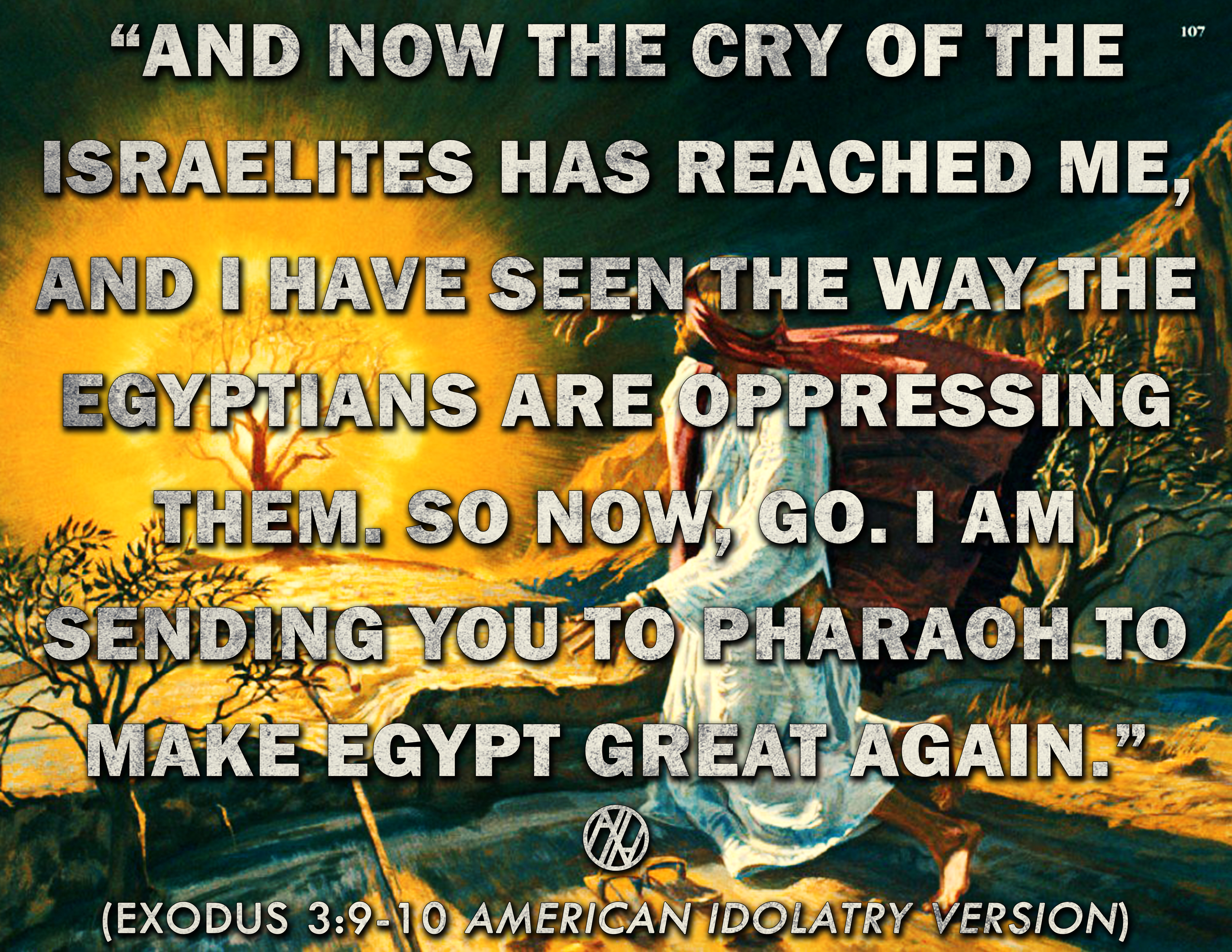 If the faithless Fanarchists, Theonomists, Reconstructionists, Dominionists, Libertarians, Minarchists, and Fauxbolitionists of contemporaneity were to recognize that their social, financial, and political circumstances emulate those of the Israelites in Bondage to Egypt, they would be forced to declare that Moses‘ obstinate “all or nothing” strategy was nothing short of foolishness and pride, if not inaction. Their own habits and worldly wisdom advise that Moses should have taken what he could get and betrayed his ideal of liberty for the baby steps of compromise, placating for the tide of tyranny and believing on Pharaoh’s deceptive and empty promises.