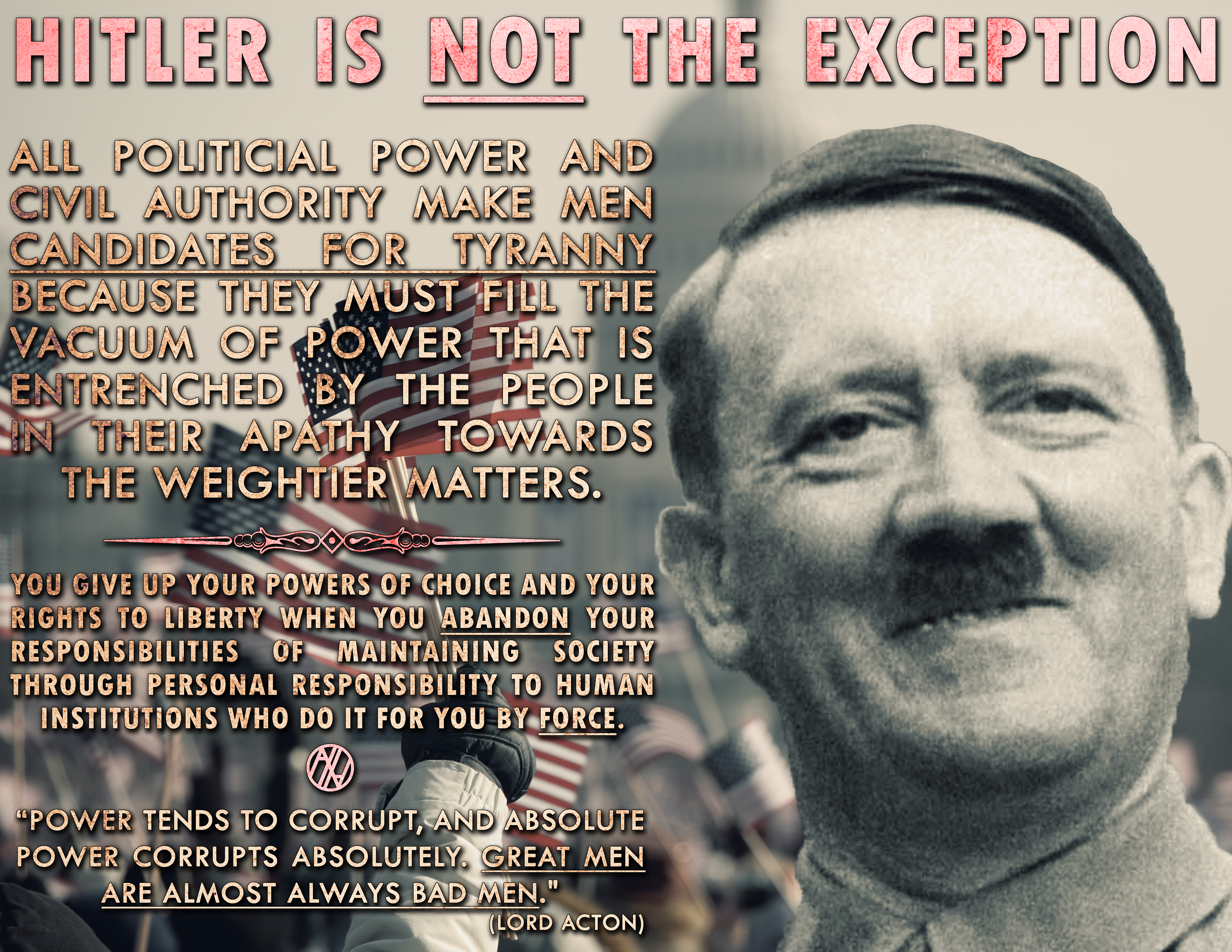 After working out the false gospel of human civil government as it related to nourishing itself on the false promises of Incrementalism in history, it is necessary to express a few examples of this hollow worldview in contemporary warnings. For instance, many libertarians and fans of freedom value political power to work out their salvation from political power. Anyone with common sense automatically sees this as a foolish, self-defeating tautology where strongholds are pulling themselves down by their own bootstraps.
