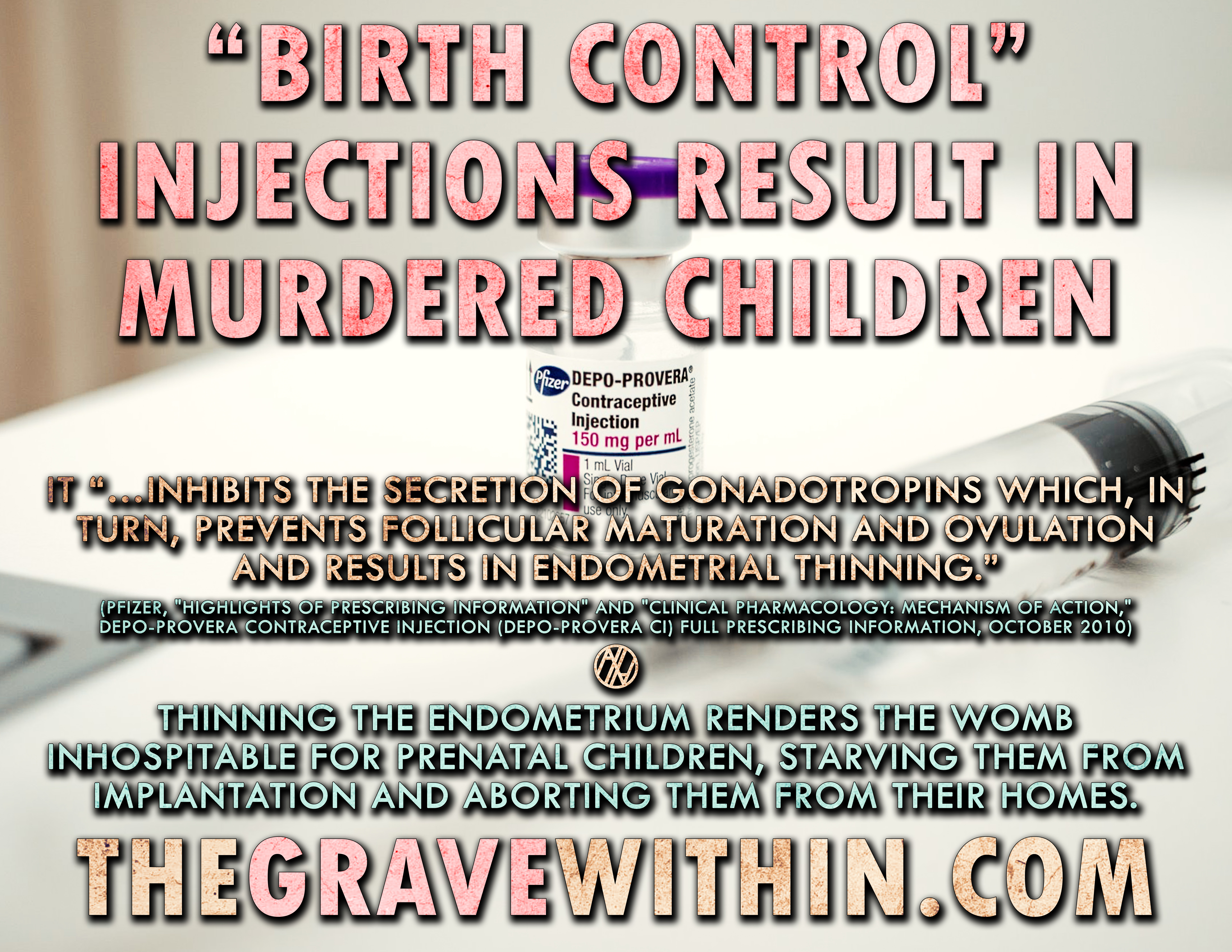 “…inhibits the secretion of gonadotropins which, in turn, prevents follicular maturation and ovulation and results in endometrial thinning.” When the endometrium, the lining of the uterus, is thinned, it is rendered hostile to implantation. This means that Depo-Provera sometimes acts as an abortifacient, since it ends the life of a new human being after conception.