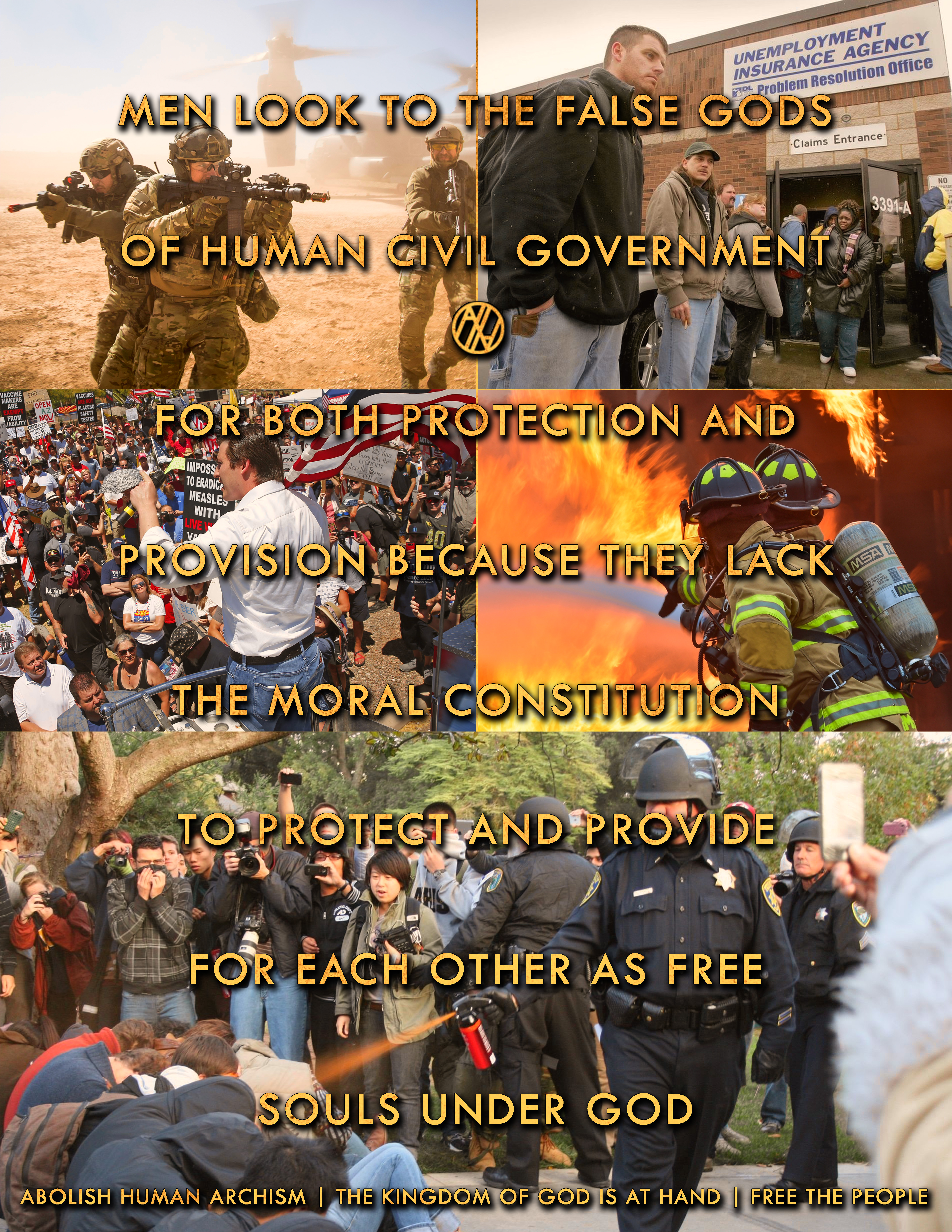 However, regime-change through both democracy and revolution do make men feral beasts kicking against the goads of their civil masters. The weapons of the early Christians with which they bested the New World Order of Rome consisted of the maintaining of their embryonic “republic in the heart of the Roman Empire” through keeping the weightier matters, and by the moral suasion with which they preached to the subject citizens of Rome to baptize them into the civil citizenship of the Kingdom of Heaven instead. It did not consist of the carnal weapons of government institution through an attempt of minarchism, Dominionism, or electing lesser magistrates to protect them and provide for them.