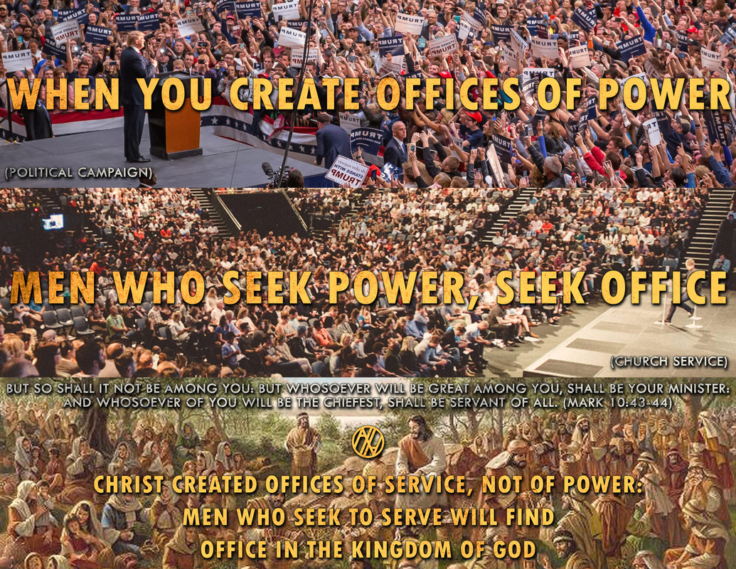 This is a description of one divine corporation (matrimony) being compared to another divine corporation (the government of God). The network of servant ministers are called out from the congregations of families, and operate entirely in accordance with Jesus Christ’s ordinances, under his sole jurisdiction. When they act according to their own will, or the will of another, they are no longer Christ’s body and cannot enjoy the covering of his jurisdictional authority.